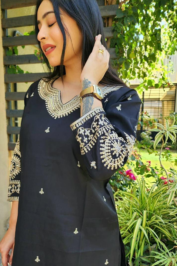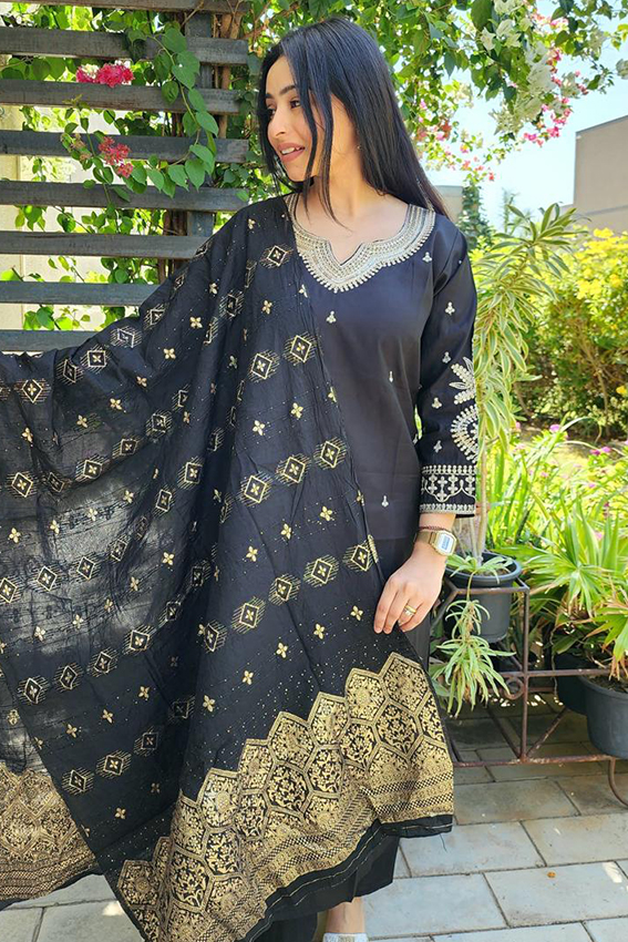 Be the first to review “Black Women Embroidered Straight Kurta Pants Set with Dupatta”