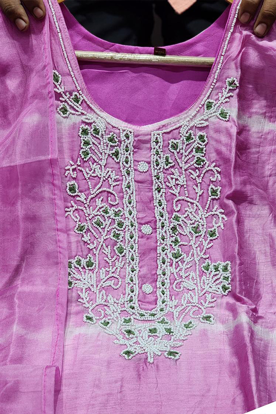 Elevate your ethnic wardrobe with this elegant viscose chanderi kurta set. Featuring intricate embroidery on the top, paired with a plain bottom, and complemented by a jacquard dupatta, it’s perfect for weddings and special occasions. Embrace timeless tradition with modern flair.